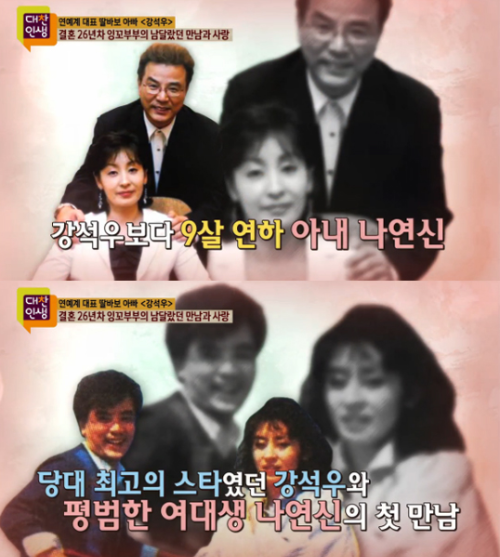 부인을 처음 보고 반해 작업실을 찾아가는 등 적극적으로 애정을 공세를 쏟아 부었다고 합니다. 강석우는 당대 최고의 스타를 달리고 있어 매우 바쁜 스케줄을 소화해 내면서도 시간을 쪼개서 연애를 했고 결국 2달 만에 결혼을 결심했다고 합니다.