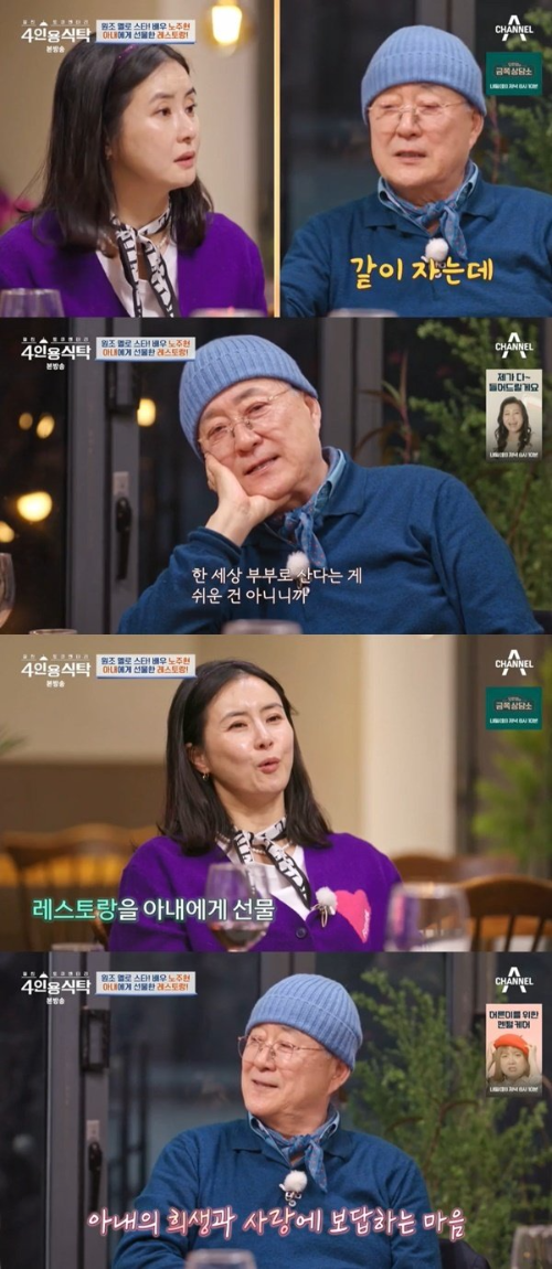 그동안 아내와 평생 부부로 살면서 아내가 희생해준 사랑에 보답하고 싶은 마음에 레스토랑을 선물했다고 전했습니다. 노주현 부인과 1977년 결혼한 48년차 부부.