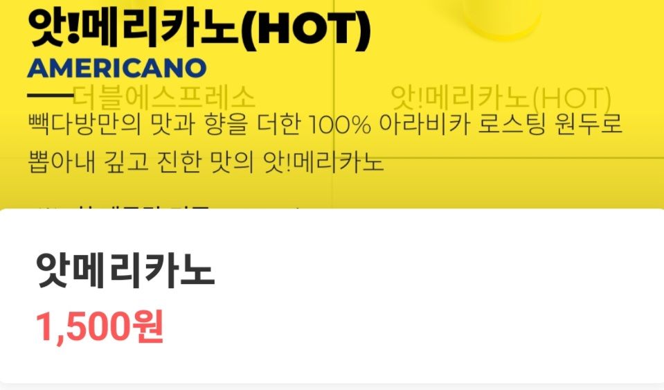 *따뜻한 아메리카노 = 앗! 메리카노 1,500원