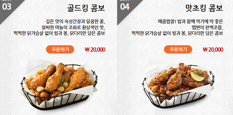 스틱 20,000원/ 윙 20,000원/ 순살 20,000원