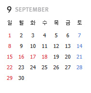 9월 16일~18일 추석연휴