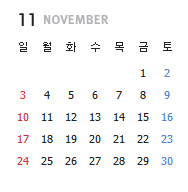 11월..공휴일 없네유
