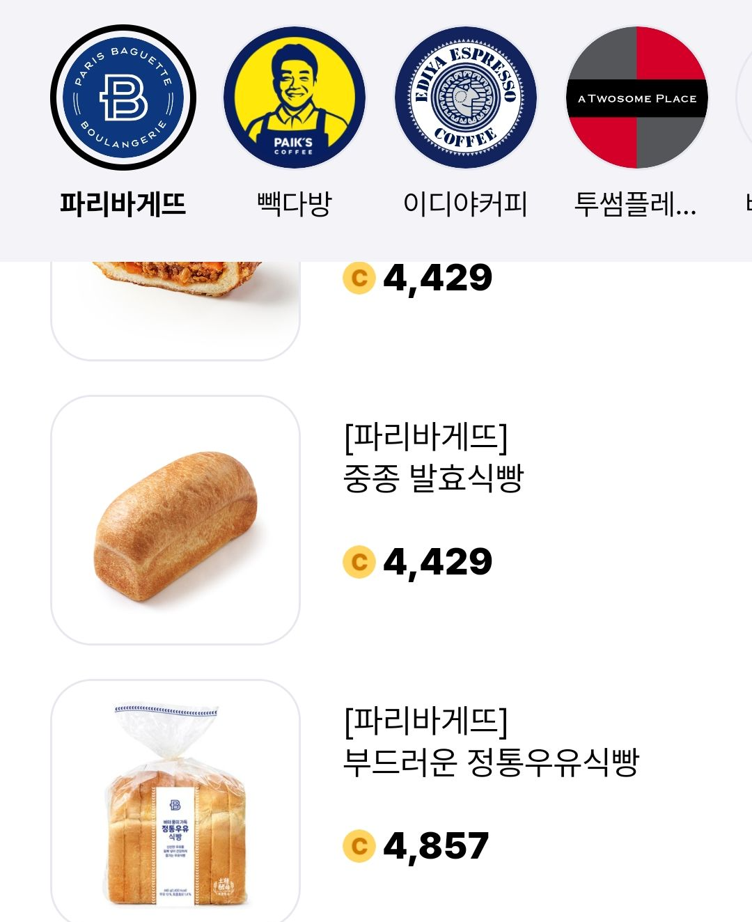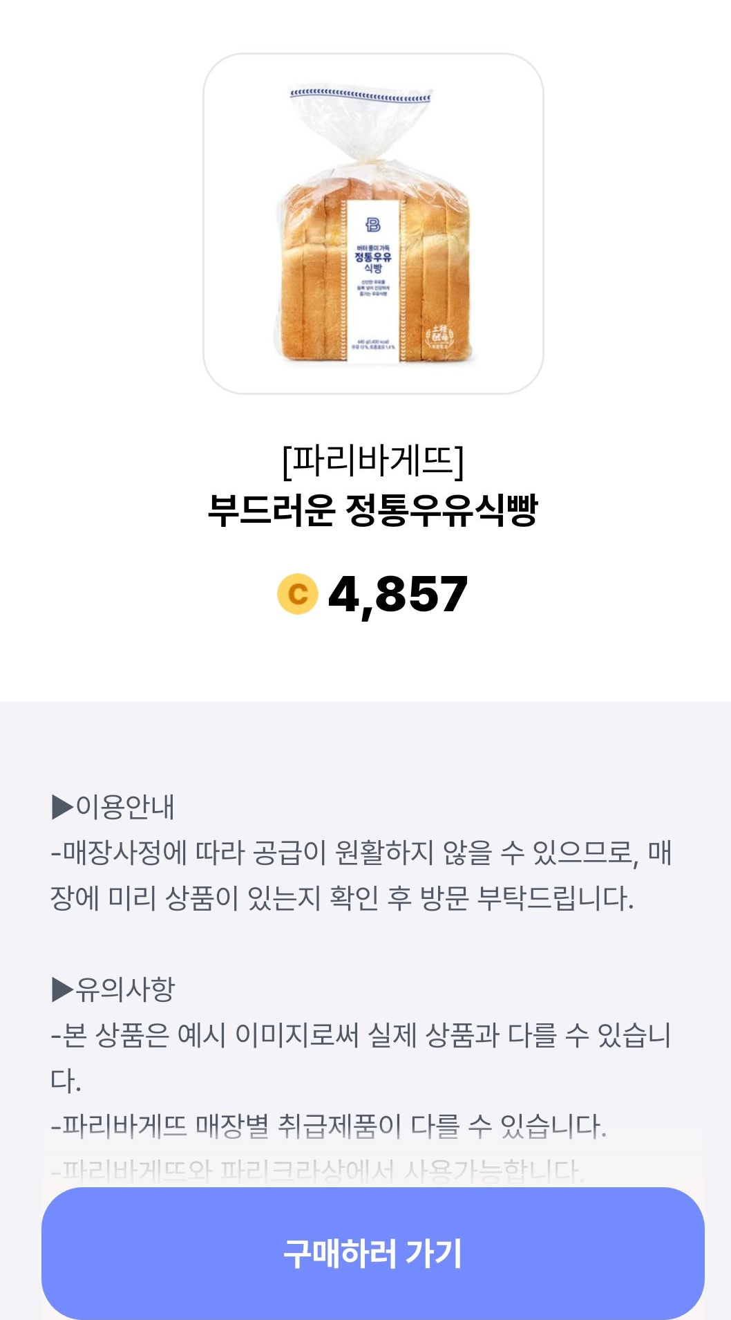 2. 예를 들어, 파리바게뜨 식빵을