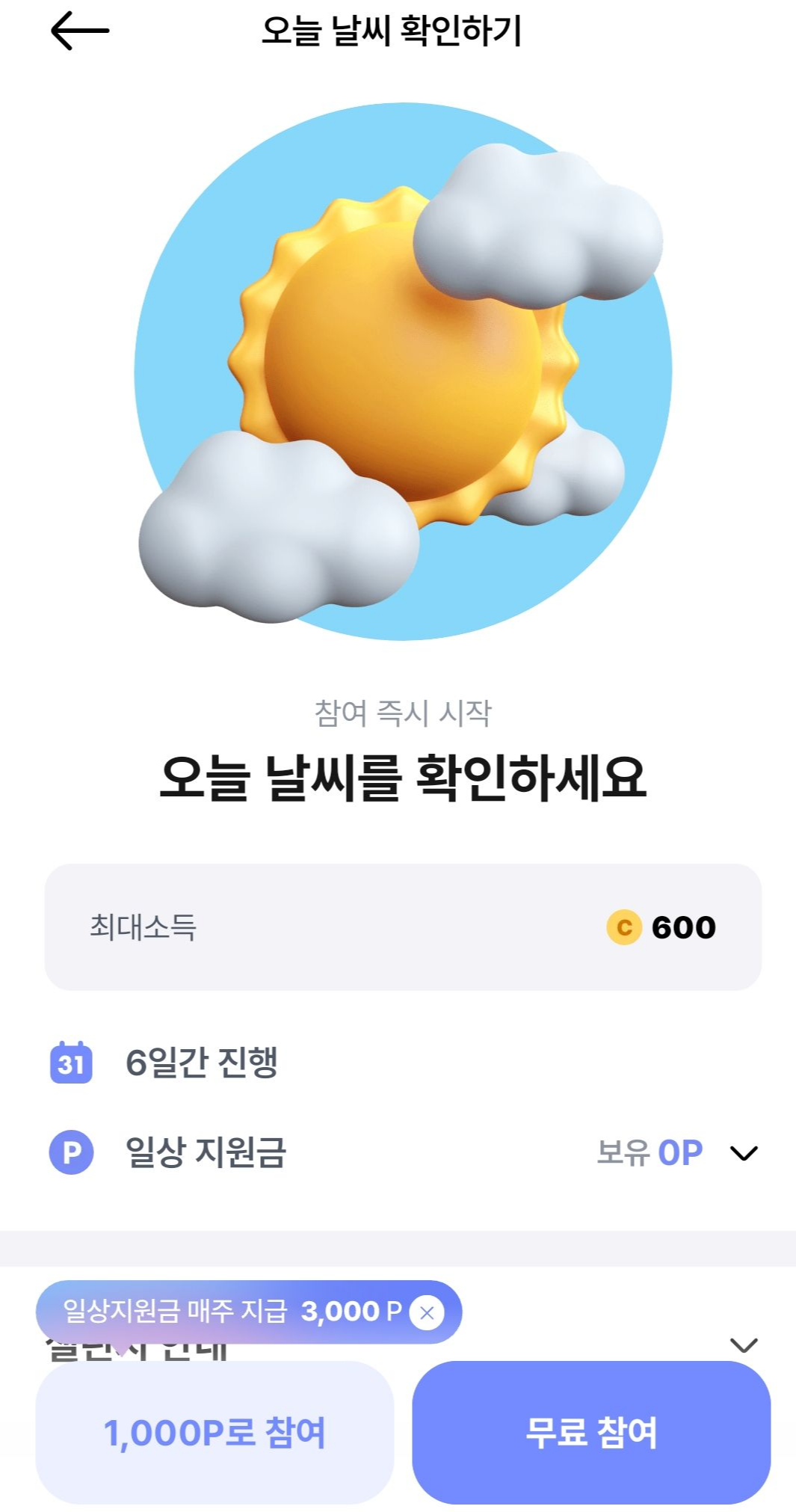 선택하면, 1000P로 참여 선택.