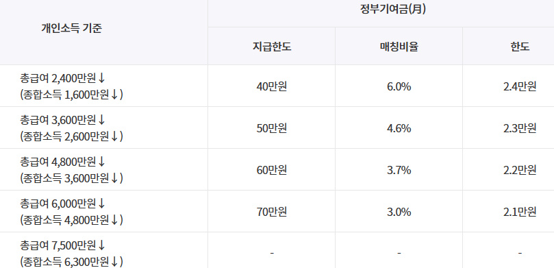 최대 6% 정부기여금 지급받을 수 있습니다.