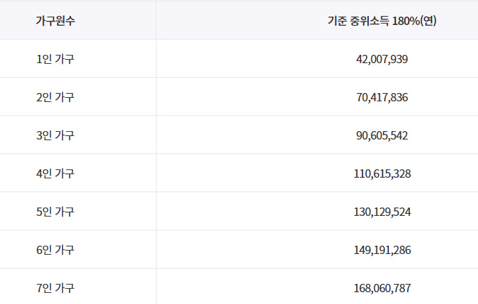 기준 중위소득 180% 이하 해당되어야 함.
